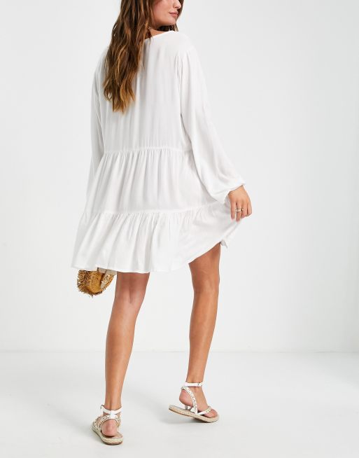 Esmee Exklusives Gestuftes Mini Hangerkleid Mit Langen Armeln In Weiss Asos