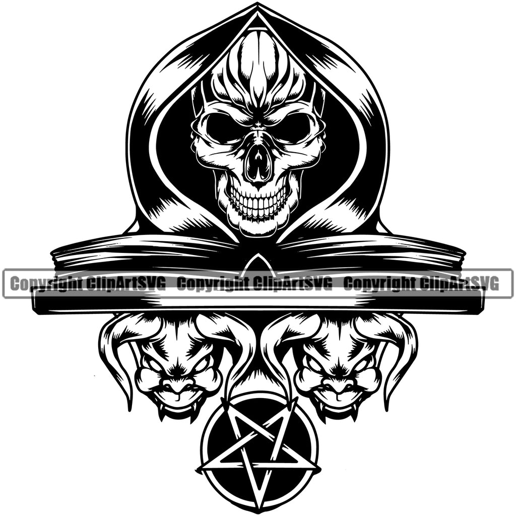 Black And White Skull Skeleton Wearing Book Vector Design Element Grim Reaper Skeleton Death Horror Dead